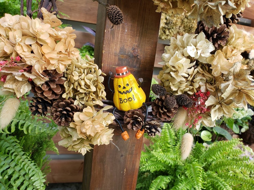 入口や店内をハロウィーン仕様に飾りつけをしておられ