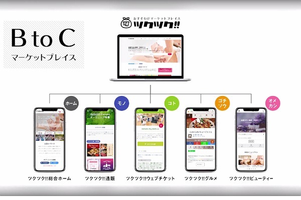 モノ(物販)、コト(体験)、ゴチソウ(グルメ)、オメカシ(ビューティー)の