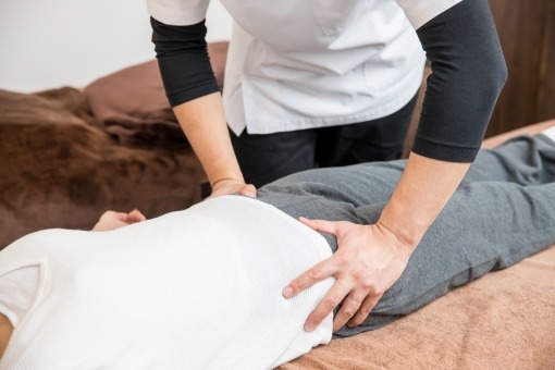 お洋服を着たままで施術ベッドにうつ伏せに寝てもらい